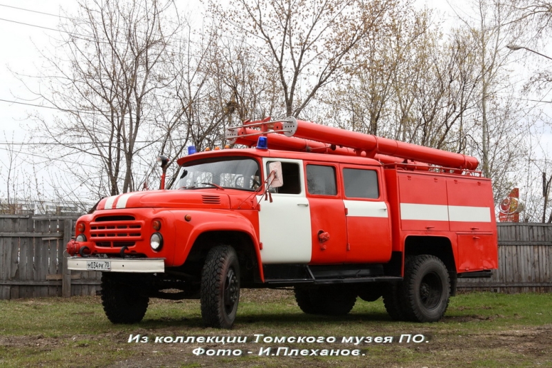 A model of a Russian fire pump-and-hose vehicle on the ZiL-130 chassis: